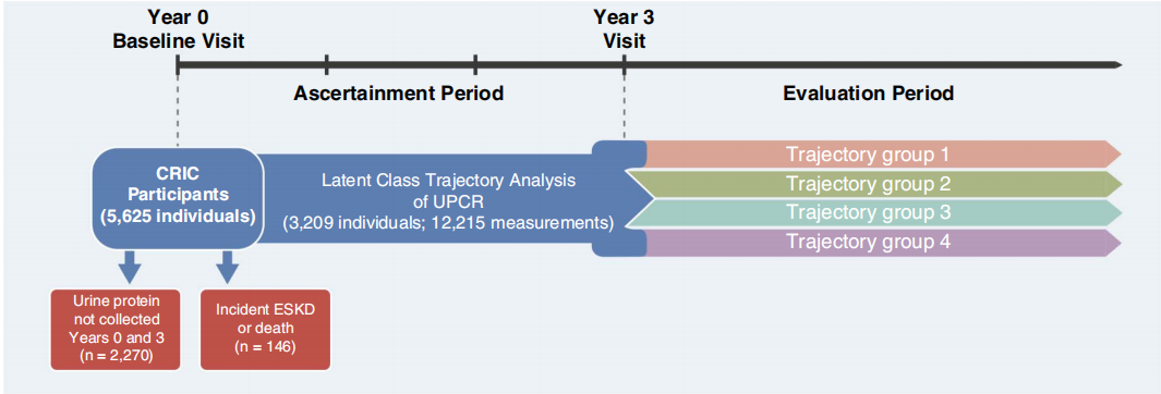 近年来,越来越多的研究提示,蛋白尿的长期变化趋势可能比孤立的单次测量值更具预后价值。此前的荟萃分析显示,1~3年内蛋白尿下降30%可降低未来ESKD风险,但这些研究多聚焦于群体水平的平均变化,未能揭示个体层面的异质性轨迹模式。对于CKD患者中是否存在不同蛋白尿演变亚型、这些亚型是否对应不同预后风险等关键问题,尚未有明确答案。因此,CRIC研究团队开展了这项前瞻性队列分析,旨在填补这一临床认知空白。