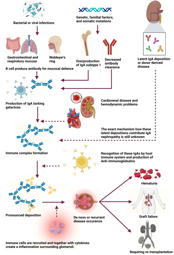 图1. IgA肾病移植后复发的病理机制