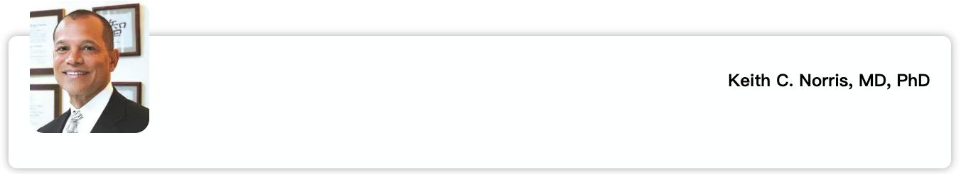 Norris博士同时担任加州大学洛杉矶分校临床与转化科学研究所社区参与及研究项目联合主任。他的研究与学术领导力深刻影响了慢性肾脏病的临床实践指南与国家卫生政策。健康公平是Norris博士的核心研究方向。