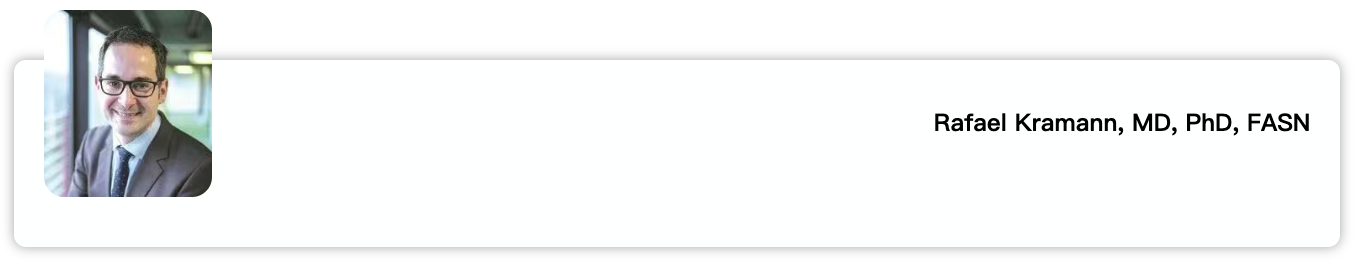 他的研究聚焦慢性肾脏病、心血管疾病及器官纤维化(尤以肾脏纤维化为重点),致力于揭示疾病机制并开发靶向疗法。Kramann博士整合多组学、单细胞分析、基因编辑等多种手段开展研究,已获得包括纤维化研究专项设施建设在内的多项重大资助,发表科学论文200余篇。他还担任德国肾脏病学会心肾血管委员会主席、欧洲肾脏协会科学咨询委员会副主席等学术职务。