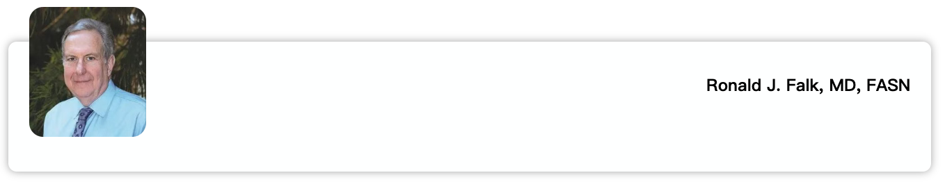 Falk博士的研究深刻影响了学界对自身免疫性肾脏病病因、机制及临床进展的认知,尤其专注于ANCA相关性血管炎的遗传学与生物标志物研究。他持有7项肾脏疾病生物标志物检测与监测方法专利,合著超过300篇同行评审论文及100部专著章节,并担任7部教材主编。此外,他还长期担任《美国肾脏病学会杂志》(JASN)、《国际肾脏》(Kidney International)等权威期刊编委。