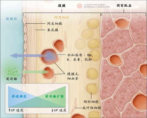 糖脂代谢紊乱还会导致腹膜功能的改变,如超滤衰竭。有效表面积的增加和渗透剂的快速吸收,以及淋巴吸收的增加,导致水通道蛋白功能受损,影响溶质清除功能。小分子溶质清除率增高,而大中分子溶质清除障碍,进一步加重了患者的代谢紊乱。