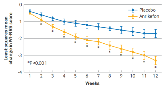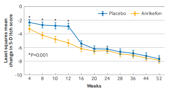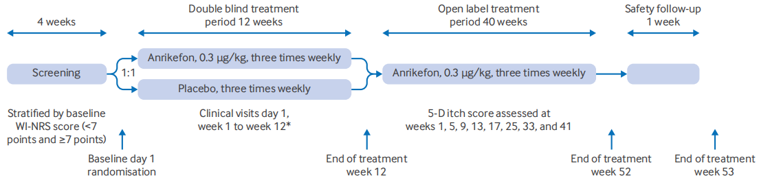 研究的主要终点是患者从基线到第12周时每周平均24小时最严重瘙痒强度数字评分量表(WI-NRS)评分至少降低4分的百分比。次要终点包括患者从基线到第12周时WI-NRS评分至少降低3分的百分比,以及使用Skindex-10和5-D瘙痒量表评估的瘙痒相关生活质量的变化。此外,还报告了从基线到开放标签治疗第40周时5-D瘙痒量表的变化。整个研究期间均对安瑞克芬的安全性进行评估。