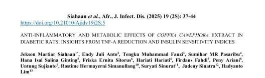 糖尿病发病率不断攀升,已成为公共卫生的重大挑战,但现有治疗方案效果欠佳,亟待探索新的干预措施。近年来,天然产品在恢复葡萄糖稳态和保护胰腺β细胞功能方面的潜力受到关注,其中罗布斯塔咖啡(Coffea canephora var. robusta)因富含氯原酸、咖啡因和二萜等植物化学成分而备受瞩目。研究表明,长期饮用咖啡可能降低2型糖尿病(T2DM)的风险,但其背后的细胞和分子机制尚未完全明确。近期,关于罗布斯塔咖啡代谢和抗炎潜力的证据不断增加,但目前仍缺乏对其在T2DM血糖控制和全身炎症影响方面的全面评估。基于此,本研究通过评估体重变化、空腹血糖、血清胰岛素水平、TNF-α浓度及胰岛素敏感性指数(FIRI和QUICKI)的变化,探讨罗布斯塔咖啡提取物在HFD–STZ–NA诱导的糖尿病大鼠模型中的抗炎和代谢益处。这些发现有望为罗布斯塔咖啡在调节炎症反应和改善胰岛素敏感性方面对T2DM管理的双重作用提供新的见解。