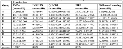 表2. 大鼠治疗后的TNF-α、胰岛素、QUICKI、FIRI及血糖降幅