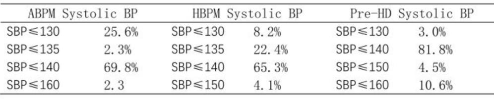 表1. 根据测量方法划分的血压控制目标(引自大会摘要)