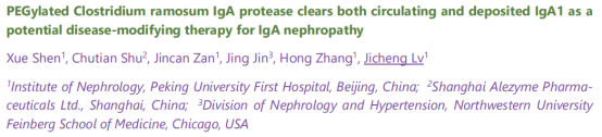 PEG化多枝梭菌IgA蛋白酶清除循环及沉积的IgA1,作为IgA肾病潜在的疾病修饰治疗