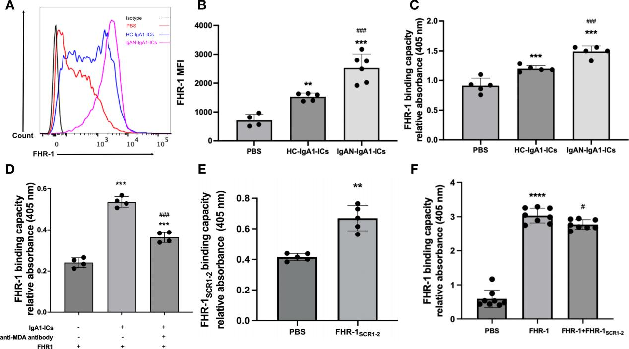 体外实验:使用患者来源的cIgA1-IC刺激人肾系膜细胞,模拟IgA沉积;并观察重组FHR-1与受损系膜细胞的结合、补体活化及与单核细胞共培养后的炎症反应。
