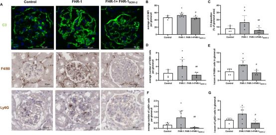 图6. FHR-1 增强肾小球IgA肾病沉积小鼠的肾小球补体激活与炎症反应
