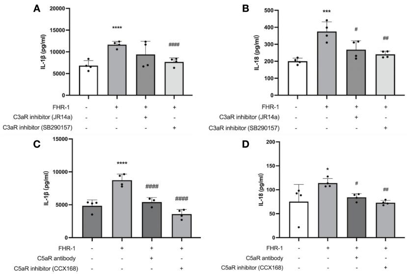 图5. 在系膜细胞-单核细胞共培养体系中,抑制C3aR和C5aR可减轻FHR-1诱导的单核细胞炎症
