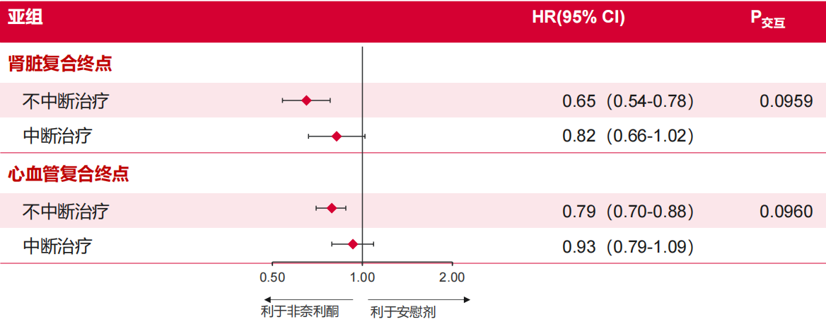 图3. FIDELITY研究亚组分析中断治疗vs. 持续治疗的心肾获益
