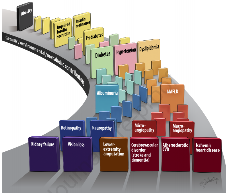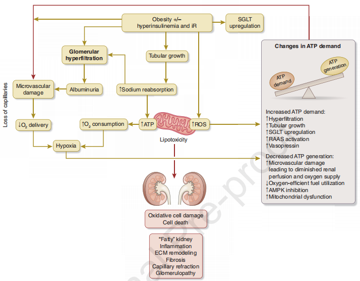 肥胖对CKD和不良心血管结果的长期影响是多方面的。多项研究表明,高体重指数(BMI)是CKD和肾衰竭风险的强独立预测因子,即使在调整基线血压水平和2型糖尿病(T2D)的存在与否后也是如此。此外,肥胖本身也可能直接导致CKD。肥胖还可能通过产生脂肪因子、激素调节炎症和葡萄糖代谢以及通过功能失调的脂质代谢影响肾脏。