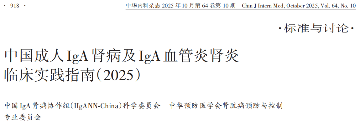 1、中国IgA肾病协作组(IIgANN⁃China)科学委员会. 中华内科杂志. 2025; 64 (10): 918-944.