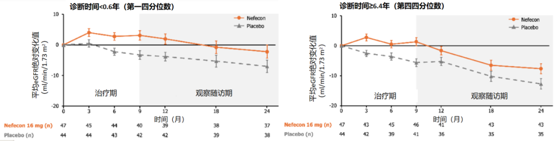 图1. 布地奈德肠溶胶囊对确诊时间较短(<0.6年)的患者eGFR改善更明显