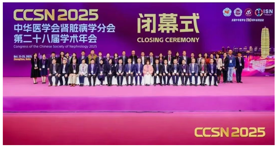 10月25日,为期5天的中华医学会肾脏病学分会第二十八届学术年会圆满落下帷幕。这是一场兼具学术高度、实践温度的学术交流,更是一场汇聚全国肾科同道、融通全球学术智慧的行业盛会。大会闭幕式由常务委员兼秘书长蒋更如教授主持,中华医学会肾脏病学分会主任委员蔡广研教授,前任主任委员陈江华教授,候任主任委员丁小强教授,副主任委员林赵明辉教授、刘必成教授、林洪丽教授、陈崴教授,以及全体委员和青年学组成员等参加了大会闭幕式。