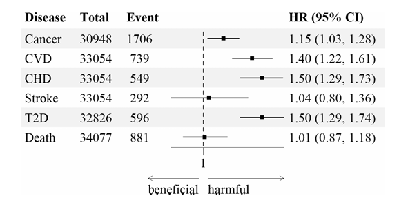 图1.环境压力指数与慢性病风险和死亡率之间的前瞻性关联