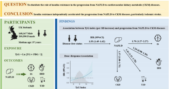 胰岛素抵抗可独立驱动NAFLD向心血管-肾脏-代谢疾病的纵向进展,且以IS风险最为显著。
