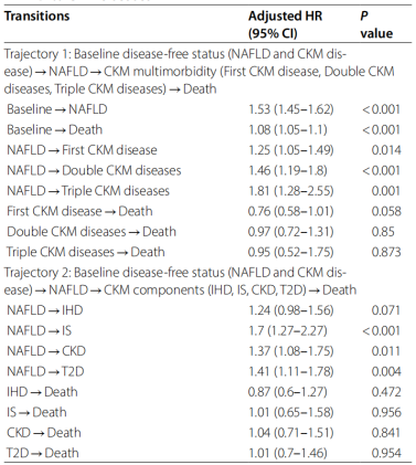 2、TyG指数与从NAFLD进展到多重CKM疾病的关联