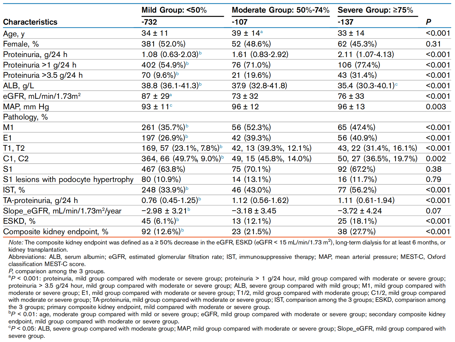 近期,北京大学第一医院研究团队在Kidney Medicine发表了一项基于976例患者的大型观察性队列研究,首次系统评估了通过电子显微镜观察的足细胞足突融合(foot process effacement, FPE)与IgA肾病患者肾脏预后及免疫抑制治疗(immunosuppressive therapy, IST)反应的关系。研究结果提示,中重度FPE为独立的不良预后因素,并且FPE严重程度影响患者对IST的获益。