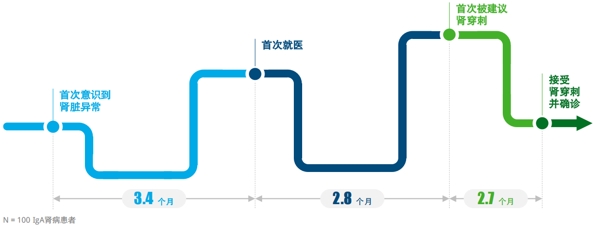 图1. 国内 IgA 肾病患者诊断过程中的关键节点以及平均周期