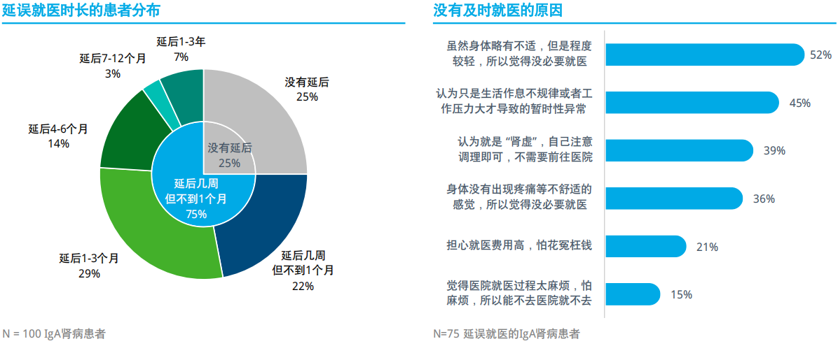 图3. IgA 肾病患者延迟就医的时长以及原因