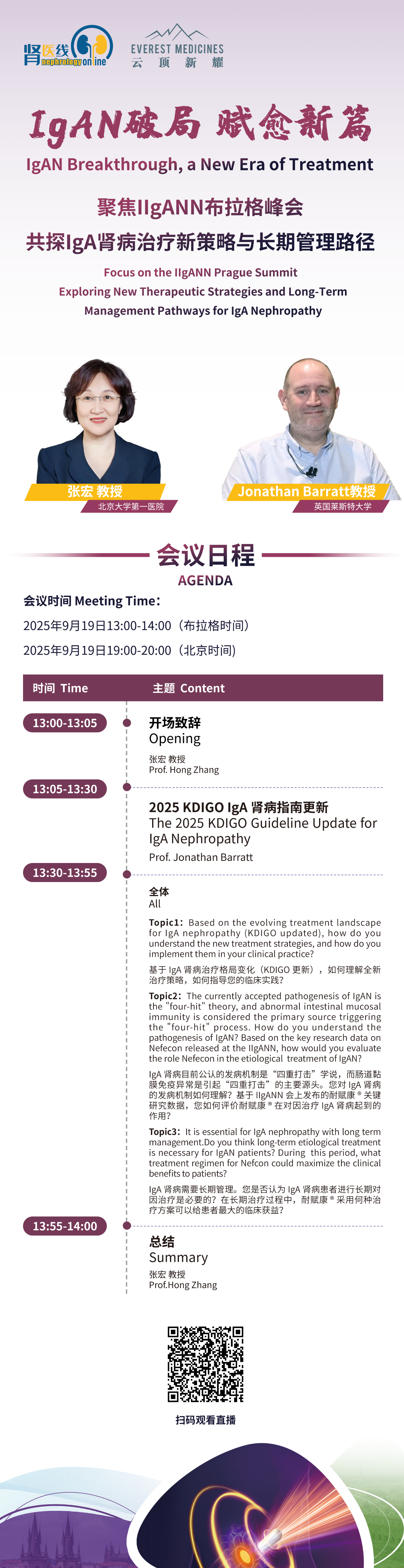 无论是想紧跟全球指南更新、获取前沿治疗方案,还是想与顶尖专家交流学术见解,这场研讨会都不容错过!届时我们在布拉格与您隔空相聚,与国内外同仁携手推动IgA肾病诊疗,为改善患者预后、守护肾脏健康共同发力!