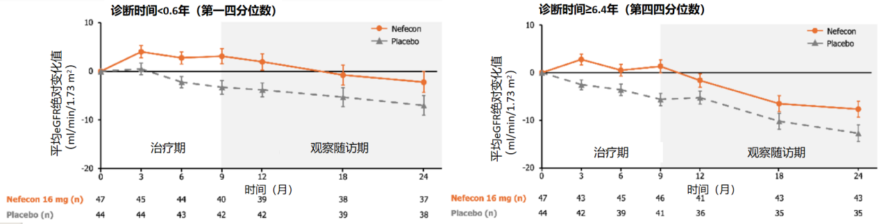 图3. 布地奈德肠溶胶囊对确诊时间较短(<0.6年)的患者eGFR改善更明显