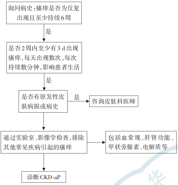 图1. 慢性肾脏病相关瘙痒(CKD-aP)的诊断路径示意图
