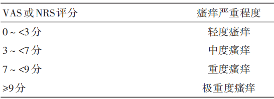表1. 单维量表VAS和NRS瘙痒严重程度评级
