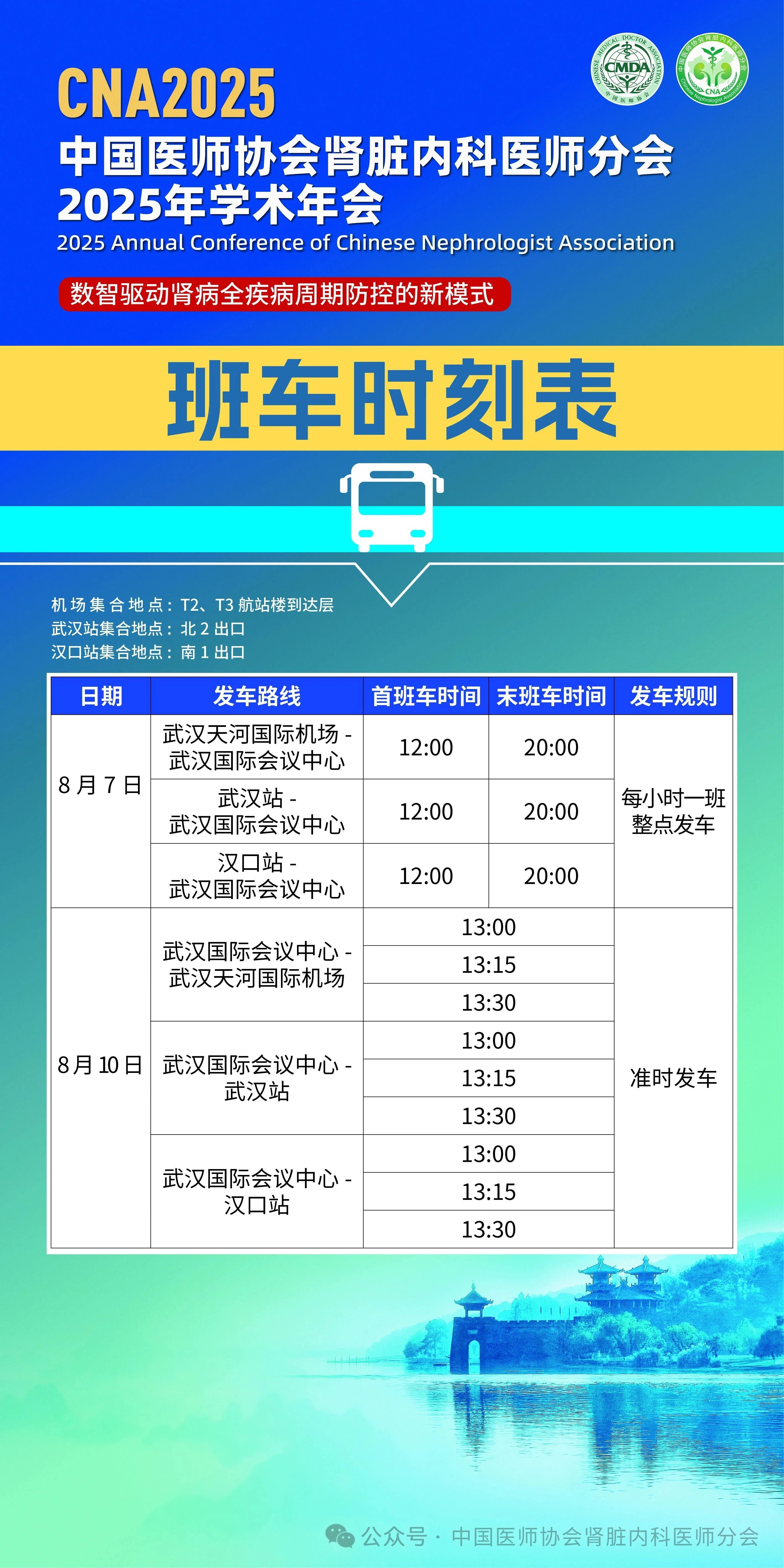 中国医师协会肾脏内科医师分会(CNA)2025年学术年会将于2025年8月7-10日在武汉召开,中国医师协会肾脏内科医师分会诚挚地邀请您出席本次盛会。