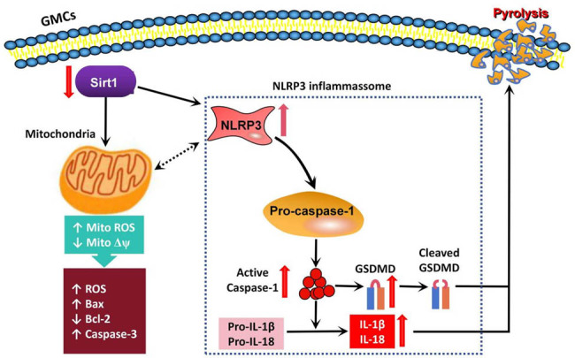 狼疮性肾炎(LN)是系统性红斑狼疮(SLE)最常见且最严重的器官并发症之一,其发病机制复杂,炎症反应及免疫调节失衡在其中起关键作用。浙江大学医学院附属第二医院风湿科、宁波市鄞州第二医院肾内科、宁波大学附属第一医院重症监护室的专家学者在Open Life Sci. 联合发表了一篇文章,旨在探讨Sirtuin1(Sirt1)在LN中的表达变化及其通过调控NLRP3信号通路对人肾小球系膜细胞(GMCs)的保护作用。研究显示LN患者肾组织中Sirt1表达显著下调,而LN患者血清可诱导GMCs发生氧化应激、细胞凋亡及线粒体损伤,并激活NLRP3炎症小体信号通路。过表达Sirt1可有效抑制上述病理过程,提示Sirt1可能通过负调控NLRP3通路发挥对LN的保护作用,为LN的治疗提供了潜在新靶点(图1)。