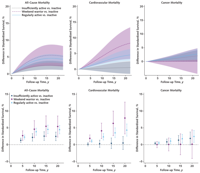 值得注意的是,周末战士模式在降低心血管死亡风险方面,其效果甚至优于规律运动模式。