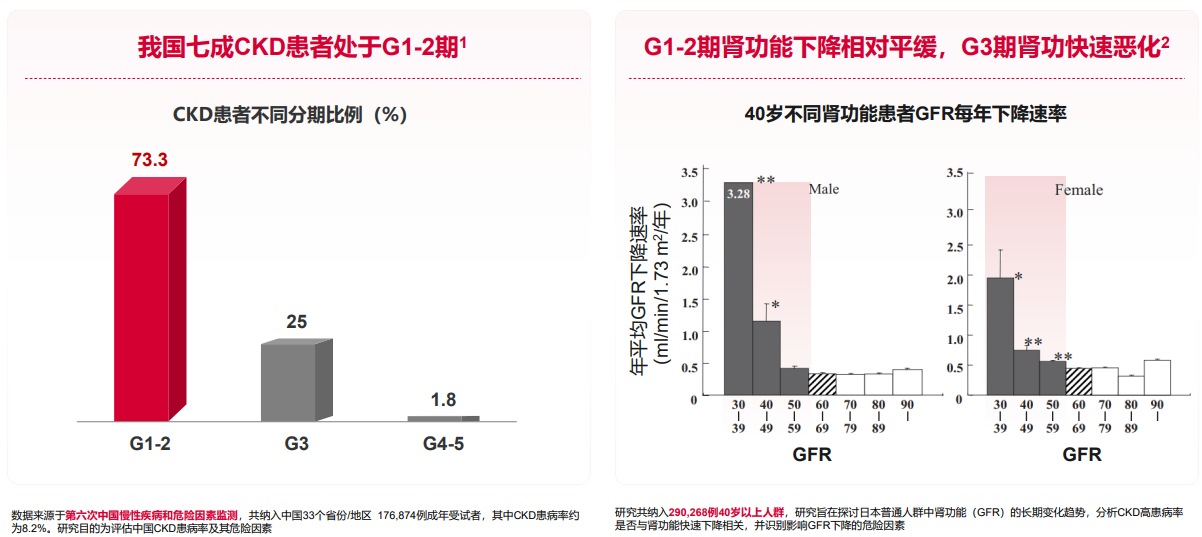 图1. G1-2期肾功能下降相对平缓,是早期干预的“黄金窗口期”
