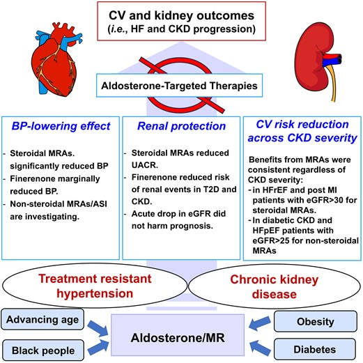 难治性高血压(TRH)常与慢性肾脏病(CKD)共存,两者并存显著增加不良心血管事件和终末期肾病(ESKD)的风险。作为肾素-血管紧张素-醛固酮系统(RAAS)的关键效应激素,醛固酮过量不仅导致水钠潴留、血压升高,更通过直接的促炎、促纤维化作用,独立于血压之外损害心肾功能。近期发表在European Heart Journal的一篇综述,系统阐述了在TRH与CKD患者中早期实施醛固酮靶向治疗的必要性与临床获益。本文基于该文献,梳理了醛固酮介导心肾损伤的核心机制,解读现有循证证据,并探讨在真实世界中克服治疗障碍的创新策略,供同道参考。