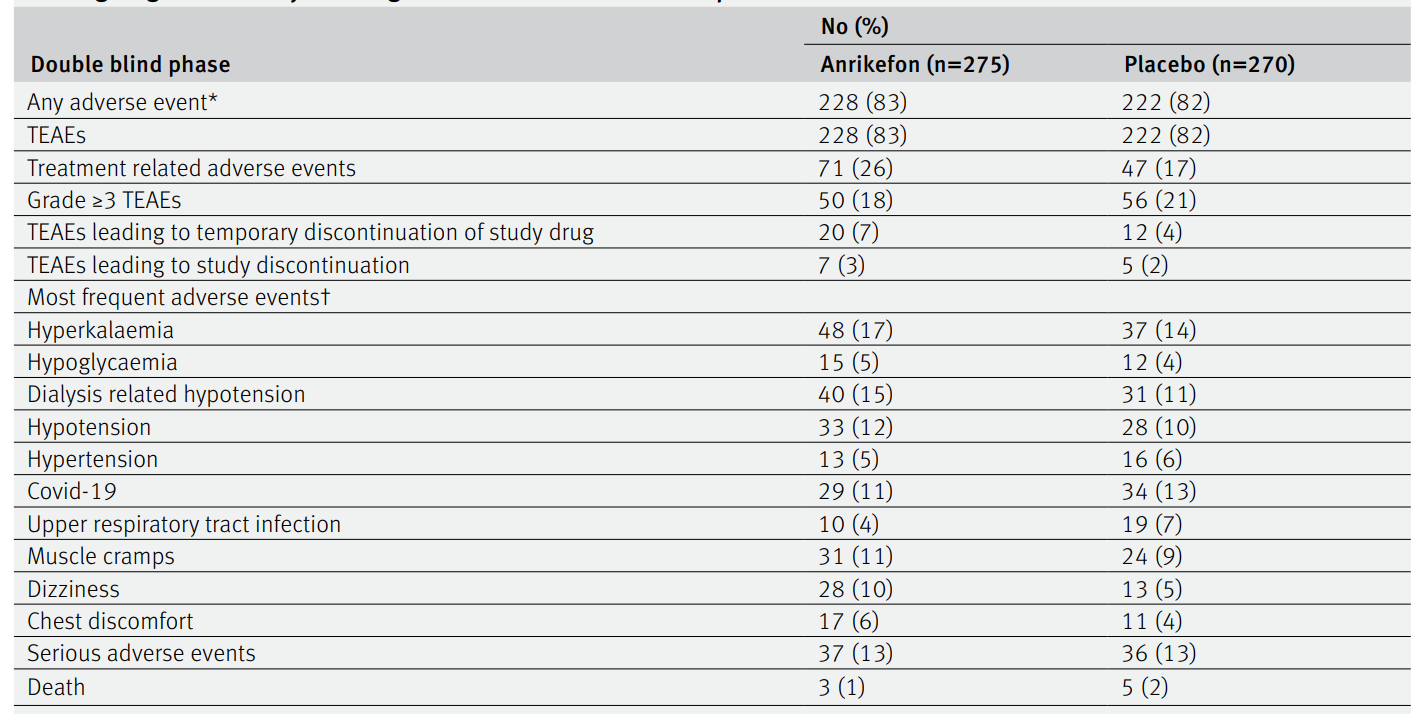 本研究共入组了545例受试者,其中安瑞克芬组275例,安慰剂组270例。