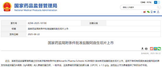 2025年4月,盐酸阿曲生坦片获得美国FDA加速批准,用于降低存在快速进展风险的原发性IgA肾病成人患者的蛋白尿,此次在国内的获批填补了IgA肾病非免疫性治疗的临床空白。作为一种非激素类基础治疗药物,其可与现有治疗联合应用,为改善疾病的长期管理增添了新的可能。