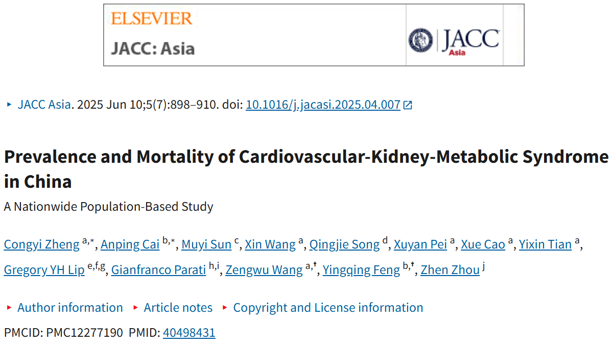 [2]Meihan Guo. Cardiovascular-Kidney-Metabolic Syndrome in China: A Nationwide Wake-Up Call. JACC Asia. 2025 Jul 1;5(7):911–913.