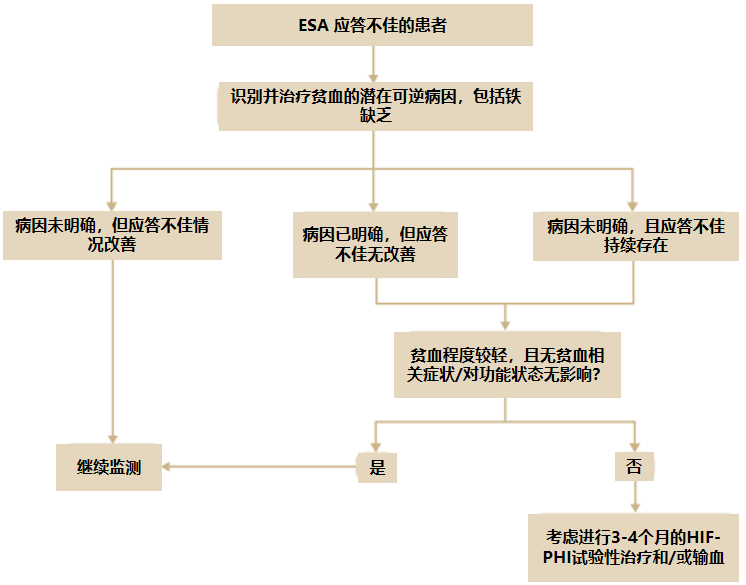 实践要点3.7.4:对于ESAs应答不佳且接受HIF-PHIs治疗的贫血合并CKD患者,若治疗3-4个月后仍未达到预期促红细胞生成效果,应停用HIF-PHIs。