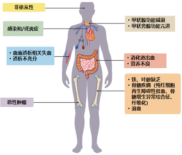 图8. CKD贫血的潜在可逆性病因除促红细胞生成素生成减少外,还包括胃肠道(GI)因素