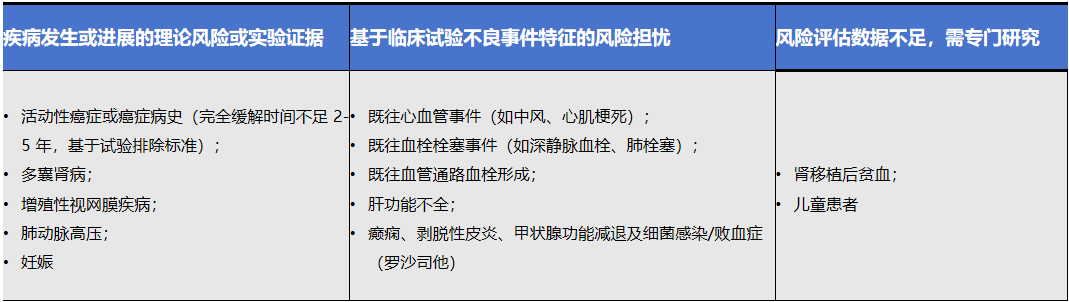 表6. CKD贫血患者存在不良事件风险的注意事项(与HIF-PHI相关)