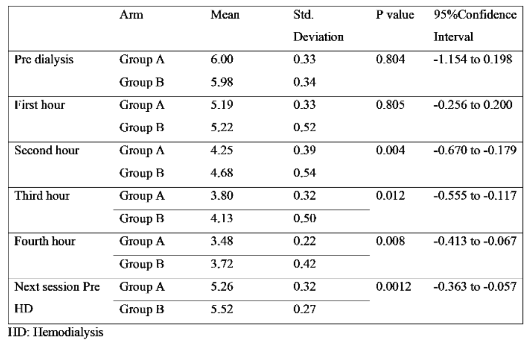 表1. 特定时间间隔的血清钾水平(每次治疗时长均为4小时)