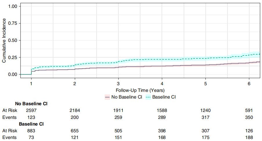 图2. 基线认知障碍或无认知障碍患者eGFR快速下降的发生率
