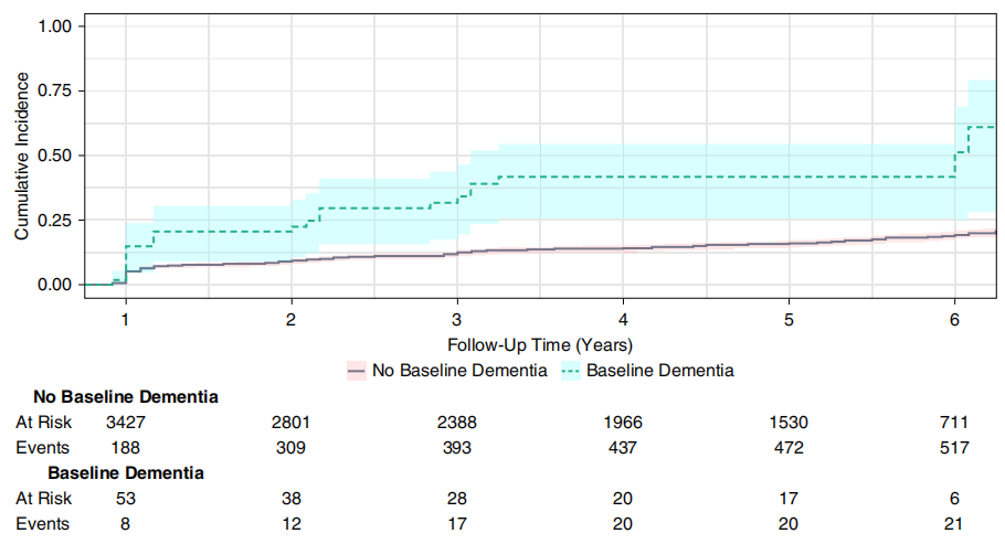 图3. 基线痴呆或无痴呆患者eGFR快速下降的发生率