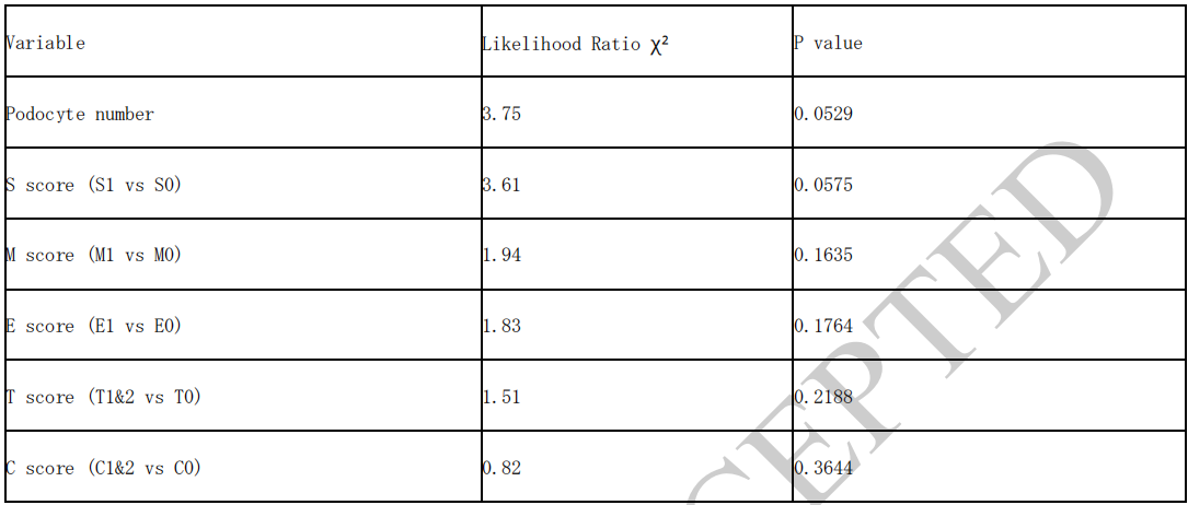表3. 牛津MEST-C评分、足细胞参数与治疗前eGFR下降的相关性