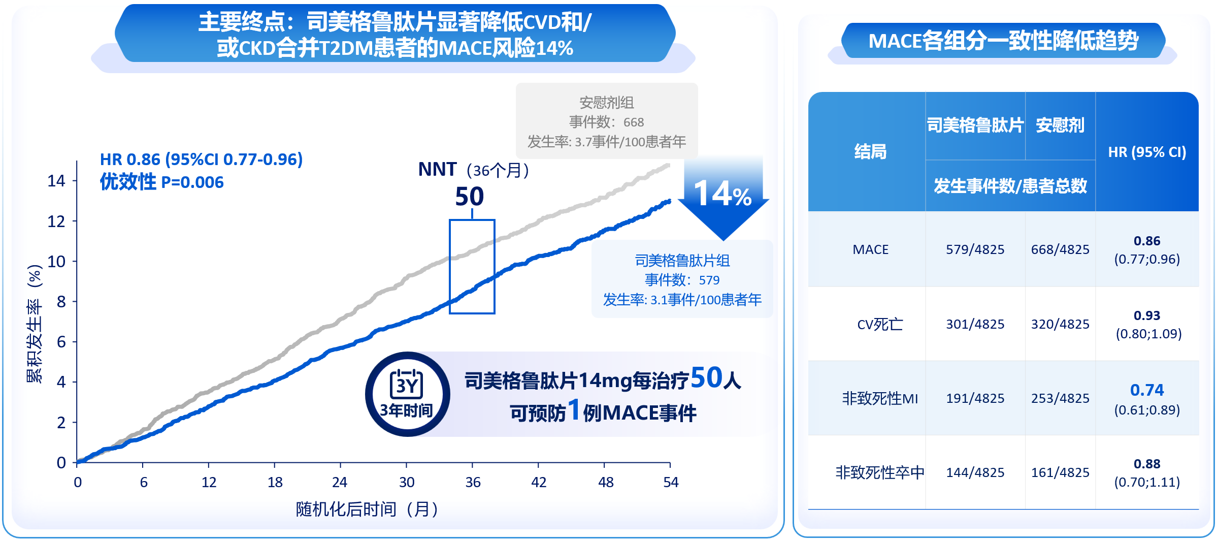 图3. SOUL研究:司美格鲁肽片显著降低MACE风险14%,且各组分呈一致性降低趋势