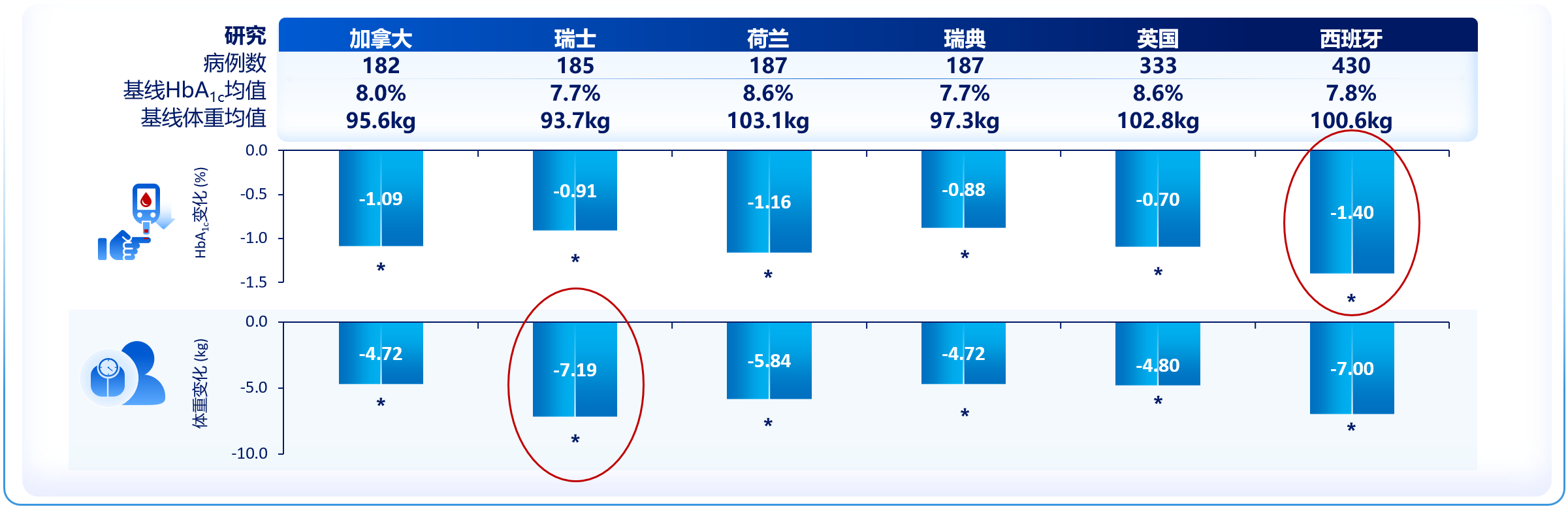 图2. PIONEER REAL系列研究:真实世界中,司美格鲁肽片降糖、减重幅度最高达1.4%、7.19 kg