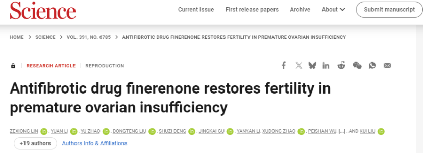 近期发表在Science上一项研究提出了全新的治疗思路。研究人员发现,治疗糖尿病肾病的新药——非奈利酮,可能通过改善卵巢纤维化,促进卵泡重新发育。
