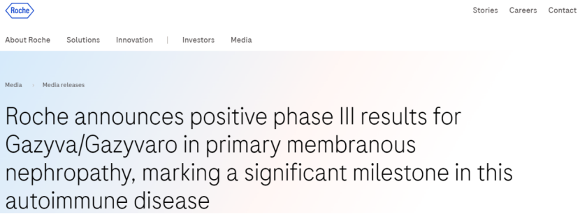 2026年2月16日,罗氏宣布奥妥珠单抗在原发性膜性肾病全球多中心Ⅲ期MAJESTY研究中达到主要终点。