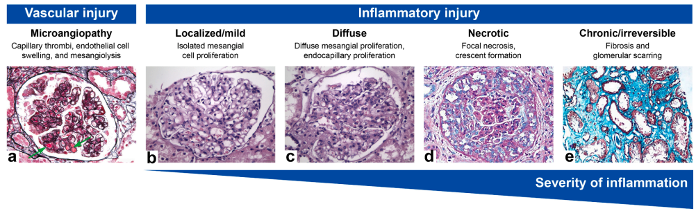 图2. CMKDs患者肾小球炎症与损伤的主要病理模式