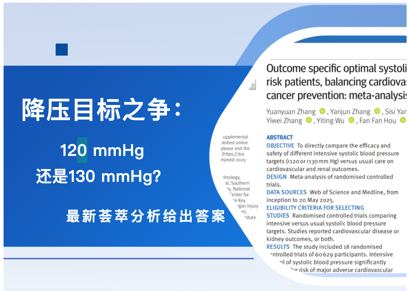近期,著名期刊BMJ Medicine发表了一项重磅荟萃分析,直接对比了120 mmHg和130 mmHg这两个最主流的强化降压目标。结果既让人意外,又发人深省:两个目标对心血管的保护作用差不多,但肾脏安全性完全不同。